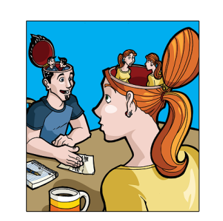 Some people learn best from explanations, some learn best from stories, and some learn best visually. Generally, people learn best from a combination of different methods. In every single chapter, in addition to explaining a communication technique that can help you in some way, we’ll also tell you a story or two about how it helped us in our life, and we’ll show you an illustration of the concept to help you hold an image of it in your mind. (All the pictures on this page are illustrations from the book.)